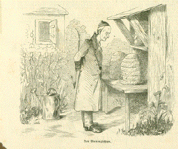 "Der Bienenzuechter" Wood engraving published ca 1880. Reverse side is printed. Small piece of paper missing in lower left corner. Image: 9 x 10.5 cm ( 3.5 x 4.1") $ 30.00 minus 40% Discount = $ 18.00 Order Nr. BEE257472 |
