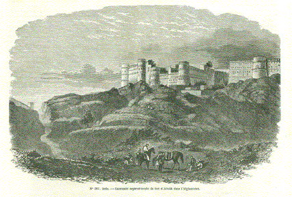 "Fort Jamrood und der Eingang zu Khyber-Passes" (Jamrud) Wood engraving published 1879.