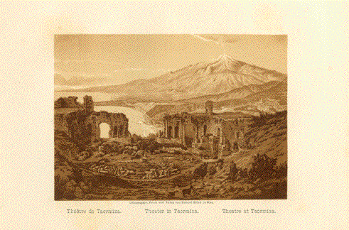 "Theatre de Taormina. Theater in Taormina. Theatre at Taormina." Anonymous lithograph printed in