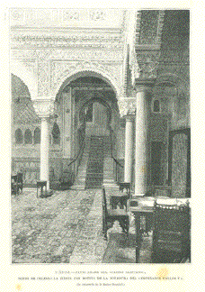 "Granada. - Alicatados del Templete Norte, en la Alhambra." Wood engraving after a photograph, 1885. On the reverse side is a short article about the beautiful art form. 22.5 x 18.5 cm ( 8.8 x 7 ") $ 20.00 minus 40 % Discount = $ 12.00 Order Nr. ESPANA248489 |