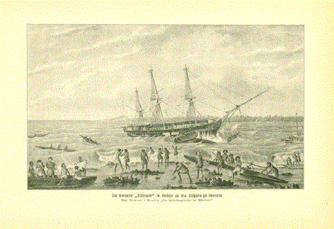 "The Shipwreck Der Schiffbruch" Steel engraving by A. Carse after a painting by Peters, ca 1850. 12.5 x 17.2 cm ( 4.9 x 6.7 ") $ 30.00 Order Nr. SHIP239758 |