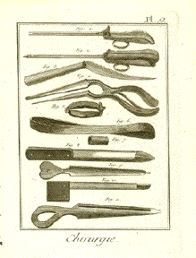"Chirurgie" Copper engraving from Denis Diderot ( 1713 - 1784 ) and Jean d´Alembert ( 1717 - 1783 ) published ca 1770. Light natural signs of age and use. Page size: 22.5 x 18.5 cm ( 8.8 x 7.2 ") $ 40.00 minus 40% Discount = $ 24.00 Order Nr. SURGERY257531 |