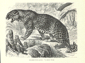 "Jaguar" Wood engraving by Specht ca 1895. Wide margins. 20.2 x 15.7 cm ( 7.9 x 6.2 ") $ 20.00 Order Nr. CAT9143 |
