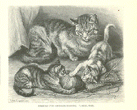 Wild Cat. Felis catus. Wood engraving ca 1895. Backside is printed. 9.6 x 16.1 cm ( 3.7 x 6.3 ") $ 20.00 Order Nr. CAT9147 |