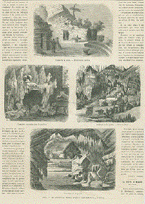 "Grotte de Luray" ( Cave of Luray in West Virginia ) Wood engraving by H. Bogae