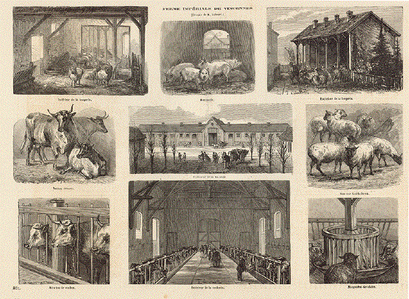 "Ferme Imperial de Vicennes" ( Imperial farm at Vicennes, France) Wood engraving ca 1875. Reverse side is printed. 23 x 32 cm ( 9 x 12.5 ") $ 40.00 Order Nr. COW240710 |