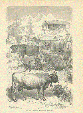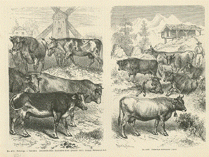 Rindviehrassen" Wood engraving ca 1875. 18 x 11.8 cm ( 7 x 4.6 ") $ 30.00 Order Nr. COW241667 |
