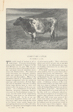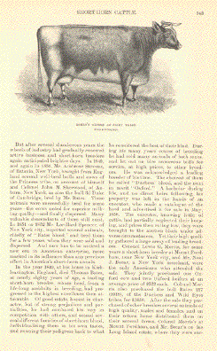 "Duchess by Daisy Bull" 7 pages with 11 wood engraving images of Shorthorn Cattle. The title of the article is "Shorthorn Cattle" by Lewis F. Allen published ca 1875. The images similar to the ones
