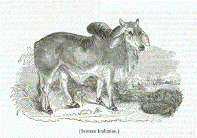 "Taureau brahmine" Wood engraving ca 1875. Above