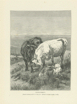 "Prize Cattle and Sheep at the Smithfield Club Show" Wood engraving by Carter, dated 1871. Reverse side is printed. 21.2 x 31 cm ( 8.3 x 12.2 ") $ 65.00 Order Nr. COW241664 |