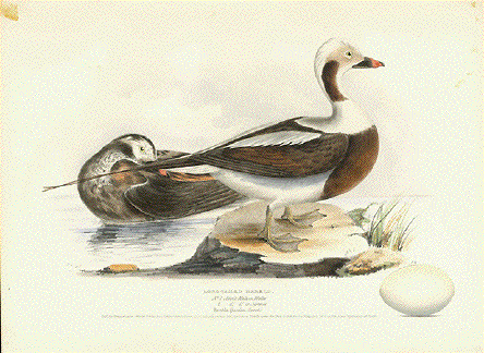 Eider Ducks - Male and Female Wood engraving, 1855. Reverse side isprinted. 10.2 x 14 cm ( 4 x 5.5 ") $ 20.00 Order Nr. DUCK6317 **************************** |