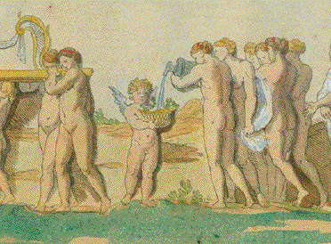 "Pierres gravées Antiques" Left:: Faun lifting up little Bacchus. Right: Bacchante feeding her panther Hand-colored copper etching by Jean Duplessi-Berteaux (1747-1820) After the drawing by Jean Baptiste Joseph Wicar (1762-1834) Published in "Galerie de Florence et du Palais Pitti" Paris, 1789 Very good condition 15 x 18 cm (ca. 5.9 x 7.1") $90 minus 40% Discount = $ 54.00 Order Nr. FAUN245256 |
