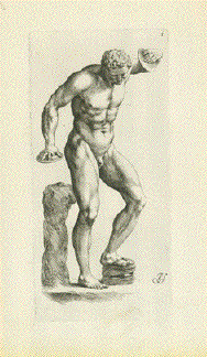 No title. Pan and a Satyr. Copper etching by Francois Perrier (1590-1650) Published in "Icones et Segmenta Nobil. Signorum et Statuarum quae Romae extant". Statues in various famous Roman gardens). Rome, 1638 A maliciously gleeful satyr embraces Pan holding his pan flute in his hand Some light browning along edges. 21,5 x 12,8 cm (ca. 8.9 x 5") $ 160.00 Order Nr. PERRIER 3544 |