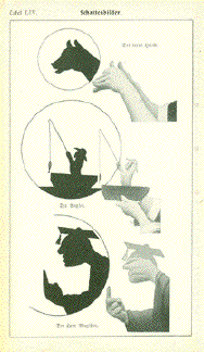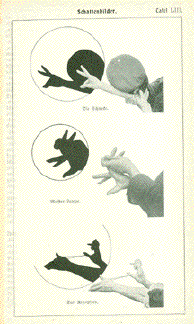 "Schattenbulder" (shadow pictures, silouettes Wood engravings published ca 1890. Small creae in margin corner. Page size: 17 x 9.5 cm ( 6.6 x 3.7") $ 35.00 minus 40% Discount = $ 21.00 Order Nr. GAME257473 |