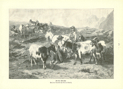"Auf der Gaisalpe" ( On the goat alm) Wood engraving made after a
