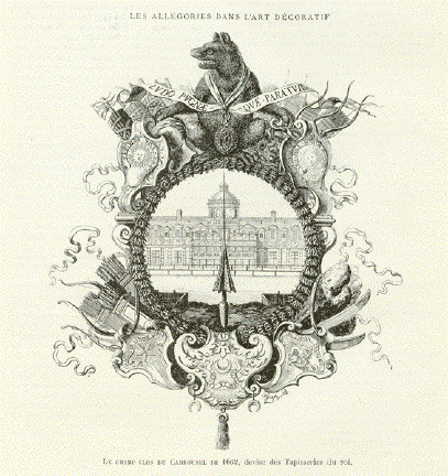 Decoratif" Wood engraving by Sgap published 1884. Reverse side is printed. 16 x 13.5 cm ( 6.2 x 5.3 ") $ 20.00 minus 40% Discount = $ 12.00 Order Nr. HERALDRY241753 |