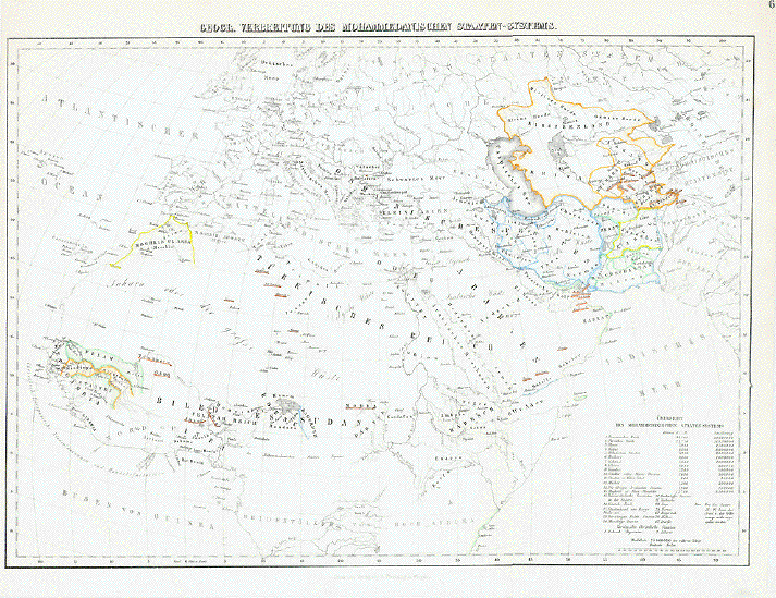 Mohammedanischen Staaten-Systems." Lithograph published by C. Flemming 1848. Original outline coloring. This map shows the area of