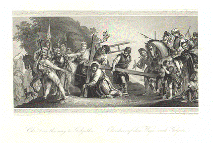 "Kreuztragung" (Carrying the Cross) Steel engraving by W. French
