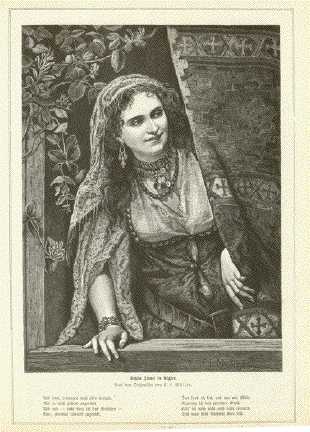 "Die Renegatin" ( Renegade ) Xylograph after a photograph of the painting by W. Cochelles ca 1890. 17 x 23.5 cm ( 6.6 x 9.2 ") $ 35.00 Order Nr. JUDAICA245410 |