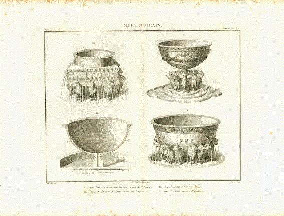 No general title: Details of the Tabernacle. Copper etching by Duraeu de La Malle after the drawing by F. Martin. Published in Sainte Bible de Vence by Henri-Francois de Vence Paris, 1827 Some foxing spots in the margins, far away from image. Image size: 22.7 x 35.7 ( 8.9 x