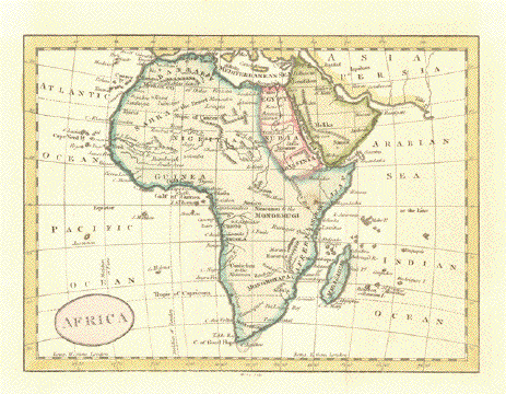 "Karte von Africa nach dem Stande der Forschung am Anfang und Ende des 19. Jahrhunderts" Wood engraving ca 1880. Text on reverse side. 11.5 x 21.5 cm ( 4.5 x 8.4 ") $ 30.00 Order Nr. AFRICAMAP251708 |