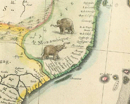 "Carte du Congo et du Pays des Cafres" Copper etching by Jean Covens and Corneille Mortier. Amsterdam, ca. 1700/10. Bright original hand coloring. Map shows in great detail (of the time) Africa from the equator to the Cape of Good Hope. It also shows in detail the Island of Madagascar and the various island groups in the Indian Ocean, including Reunion and Maurice. Except for the right side, which obviously was in poor shape and has restored tears and creases as well as an added margin, and a vertical crease running down the middle of the image, except for all of that the actual image has a strong, clear impression and is interesting on account of the shown detail with borderlines of long gone kingdoms and the information about various tribes and their areas. Just to name a few: Kingdxom of Mataman, Kingdom of Quiteve, Kingdom of Sabia, Kingdom of Mongale, Kingdom of Nimeamaie or Mono-Emugi, Kingdom of Matamba, Kingdom of Angola, Kingdom of Abutua, Kingdom of Benguela, Kingdom of Macoco or Anzico And tribes: Caffers, Jagas Anthropopha, Zanguebar, Namaguas, Hottentots, Maracates, Bokkemeale and several others. This map gives ample information about ethnic kinships Southern Africa, south of the equator. 50 x 60 cm (19.7 x 23.6") $ 550.00 (in spite of the less than good condition) Order Nr. AFRICAMAP234610 |