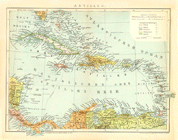 colors are explained in Map was published 1892. Vertical centerfold. 21 x 27.5 cm ( 8.2 x 10.8 ") $ 45.00 Order Nr. CARIBBEAN249274 |