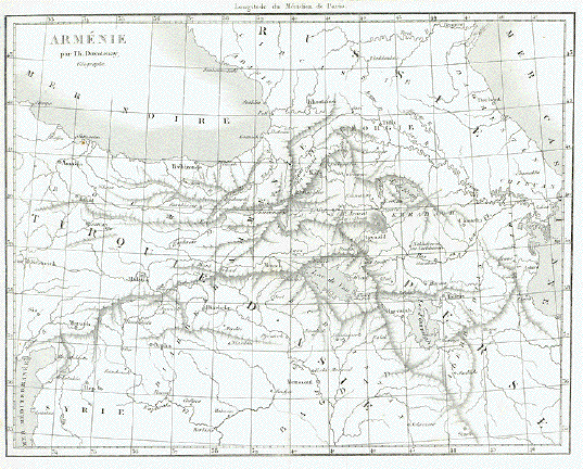 "Armenie Ancienne" Steel engraving by Th. Duvotenay, 1838. Map has folds to fit original book size. 17.7 x 23 cm ( 6.9 x 9") $ 35.00 Order Nr. CAUCASUSMAP242511 |