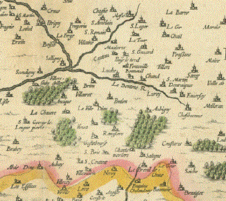Ortelius. Shows Nevers in the east, Bourges in the