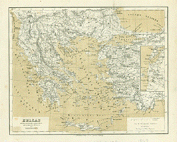 "Griechenland und Die Ionischen Inseln". Steel engraving by A. Theinert for C. Flemming in Glogau. Published va 1860. Some original outline coloring. Very detailed map of Greece with its many islands. Map image is very clean. Light browning on margin edges, 32.5 x 42 cm ( 12.7 x 16.5 ") $ 130.00 Order Nr. GREECEMAP1287 |