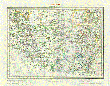 "Persia" Originally borderline-colored copper etching by Ramon Alabern, 1830. This is one of the few maps of Persia that were printed in Spain. It reaches from turkestan in the north to the Indian Ocean in the south. In the upper left is part of Armenia. In the lower right is Kurachi and Hyderabad. In the center of the map is the region known as Khorasan. Map is clean with wide margins. Vertical centerfold. In the lower margin are four worm holes. 31 x 41.5 cm ( 12.2 x 16.3 ") $ 320.00 Order Nr. MIDDLEEASTMAP1869 |