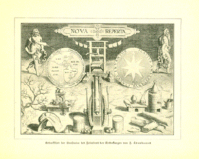 "Gedenkblatt der Grosstaten des Zeitalters der Entdeckungen von J. Stradanus" (Memorial image to the great times of discovery by J. Stradanus) Wood engraving published ca 1890 on a page of text that continues on the reverse side side about the great discoveries. Image: 8.5 x 12 cm ( 3.3 x 4.7") $ 30.00 minus 30% Discount = $ 21.00 Order Nr. SOUTHAMERICAMAP257439 |