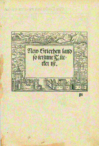 "New Griechen lande mit andern anstossenden laendern wie es zu unsern zeiten beschriben ist" Woodcut. Published in "Cosmographia" by Seabastian Muenster (1488-1552) Basel, 1553 Shows Greece to the East Balkan, the Black Sea, Constantinople (Istambul), West Anatolia, the immense world of Greek islands south to Crete. Early map of Greece and Western Turkey Light general age toning. Lower margin more intensely toned. Lower left margin partially with reeforcement. Map: 25,5 x 34,4 cm (ca. 10 x 13.5") $ 800.00 Order Nr. GREECE252936 |