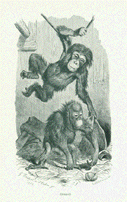 "Portrait of an Orang Outang" Wood engraving, 1844. 10.5 x 13.3 cm ( 4.1 x 5.2 ") $ 20.00 minus 40% Discount = $ 12.00 Order Nr. MONKEY9741 |