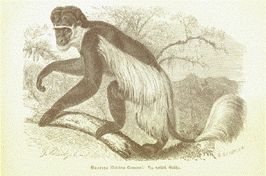 "Guereza (Colobus Guareza)" Wood engraving on a page of