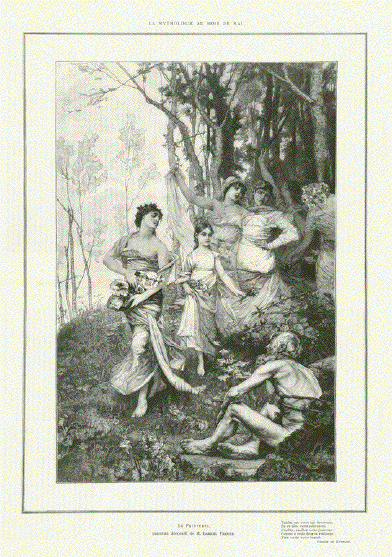Mai" Notice the faun in the lower right corner! Wood engraving 1884. Horizontal denterfold. Minor signs of age. Image: 29.5 x 19.5 cm 11.6 x 7.6 ") $ 35.00 Order Nr. MYTHOLOGY242132 |