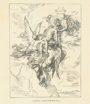 "Pluto und Proserpina" Toned wood engraving, 1873. Image with outline: 16 x 9.5 cm ( 6.2 x 3.7 ") $ 30.00 Order Nr. MYTHOLOGY248200 |