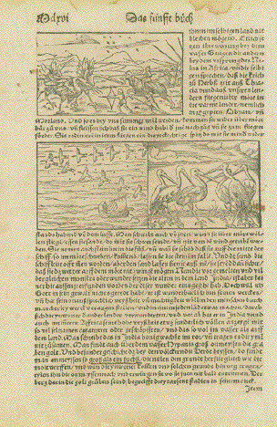 "Odysseus bei Kirke" Wood engraving 1867. Below the