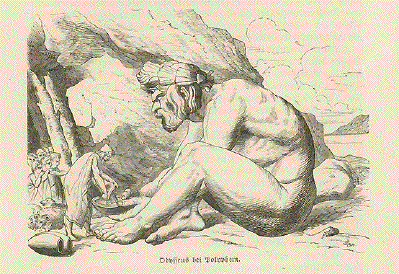 "Odysseus by Polyphem" Wood engraving published 1867. Reverse side is printed. 9 x 10.7 cm ( 3.5 x 4.2 ") Order Nr. MYTHOLOGY243801 SOLD |