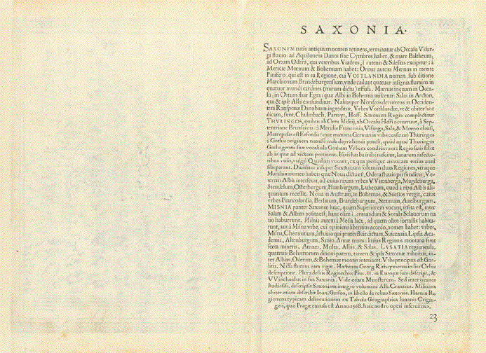 Nr. 23 - "Saxoniae, Misniae, Thuringiae, Nova Exactissimaque Descriptio" Copper etching. Left and right margins have been widened. Minor repairs in centerfold. 34,3 x 50,5 cm (ca. 13.5 x 19.9") $ 1450,00 minus 30% Discount = $ 1015.00 Order Nr.ORTELIUSFIRSTEDITION247788 |
