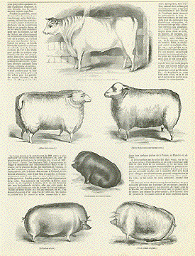 "Schweinerassen" ( breeds of pigs ) Wood engraving published 1895. 21 x 13.7 cm ( 8.2 x 5.3 ") Order Nr. PIG244489SOLD |