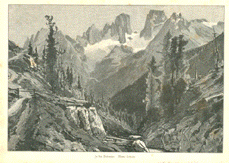 Dolomite Mountains: Wood engraving ca 1870. 22.4 x 15 cm ( 8.8 x 5.9 ") $ 20.00 Order Nr. ALTOADIGE3032 |