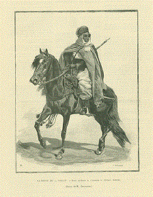 ãSpahi Algérien de l'escorte du Général Saussier". zicography by S. Chelmonski. Le Monde Illustré. Ca.1890. General age toning. Some creasing. Hardly visible horizontal centerfold. Reverse side is printed. 26 x 20 cm (10.2 x 7.9") $ 50.00 Order Nr. ALGERIANORTHAFRICA2031 |