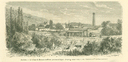 ãAlgérie. - Le village de Mouzaia-les-Mines (province d'Alger)". Wood engraving Thorigny after