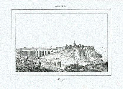 "Algier Belida" ( Bilida ) Steel engraving ca 1850. 8 x 12 cm ( 3.1 x 4.7 ") $ 20.00 Order Nr. ALGERIA246003 |