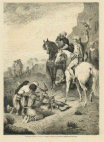 "Ahmed-Bey et Brahim-Ben-Illès, les derniers chefs arabes faits prisonniers dans la province de Constantine". Wood engraving by Morel after