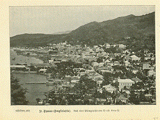 "Einfahrt in den Hafen von St. Thomas" Wod engraving after Kolberg, 1903. Reverse side is printed. 10 x 13 cm ( 3.9 x 5.1 ") $ 35.00 Order Nr. CARIBBEAN246803 |