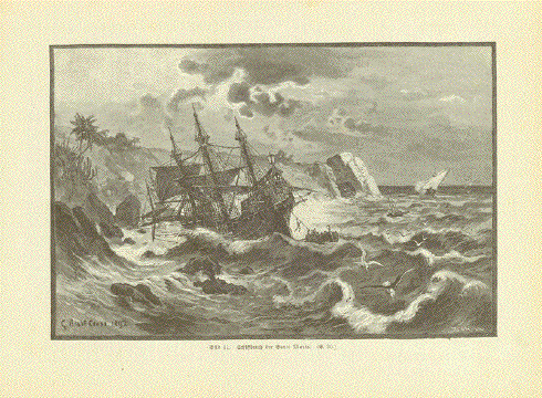 "Schiffbruch der Santa Maria" Wood engraving after G. Closs