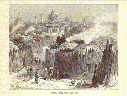 "Urga" (Ulaanbaatar) Wood engraving on a page of