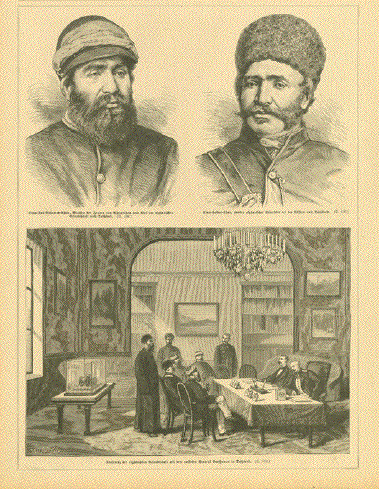 "Blick auf Samarkand" Wood engraving ca 1875. Reverse side is printed with an image of people eating in Bukara. 15.3 x 22.6 cm ( 6 x 8.8 ") $ 35.00 minus 40% Discount = $ 21.00 Order Nr. CENTRALASIA235325 |